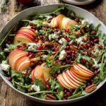 This Autumn Harvest Honeycrisp Apple and Feta Salad combines crisp, sweet apples with creamy avocado, tangy feta, and crunchy toasted pecans and pumpkin seeds, all brought together with a flavorful apple vinaigrette. Finished with crispy prosciutto and pomegranate arils, it offers a delicious balance of textures and tastes perfect for a light lunch or festive side dish during the fall season.