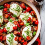 This Balsamic Glazed Caprese Chicken recipe features tender, juicy chicken thighs seared to golden perfection and baked with a sweet and tangy balsamic glaze, fresh mozzarella, and ripe cherry tomatoes. Finished with fresh basil, this dish elevates a classic Caprese salad into a hearty and flavorful main course perfect for a family dinner or special occasion.