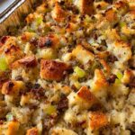 This World’s Best Thanksgiving Stuffing recipe features a savory blend of pork breakfast sausage, sautéed vegetables, and tender French rolls soaked in a flavorful mixture of broth, milk, and eggs. Baked to golden perfection, this comforting dish is the perfect holiday side that balances moistness with a crispy top, delivering an irresistible taste that complements your Thanksgiving feast.