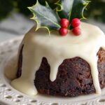 Traditional British Christmas Pudding is a rich, fruit-filled steamed dessert made ahead with butter, dark brown sugar, mixed spice, and brandy-soaked dried fruits. This classic holiday treat is steamed for hours, developing deep flavors, and served flambéed with brandy and accompanied by custard or cream for a festive celebration.