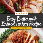 This Thanksgiving Buttermilk Brined Turkey recipe yields a juicy, flavorful bird perfect for your holiday dinner. The turkey is soaked in a tangy buttermilk and hot sauce brine for 24 hours, then rubbed with seasoned butter and roasted low and slow to achieve tender, moist meat infused with aromatic herbs and citrus.
