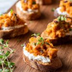 - Assemble the Crostini: Remove the roasted butternut squash from the oven and mash it together with the shallot jam until well combined. Spread a generous layer of ricotta or goat cheese on each toasted bread slice. Top with a spoonful of the squash-shallot mixture. Garnish with freshly chopped mint before serving.