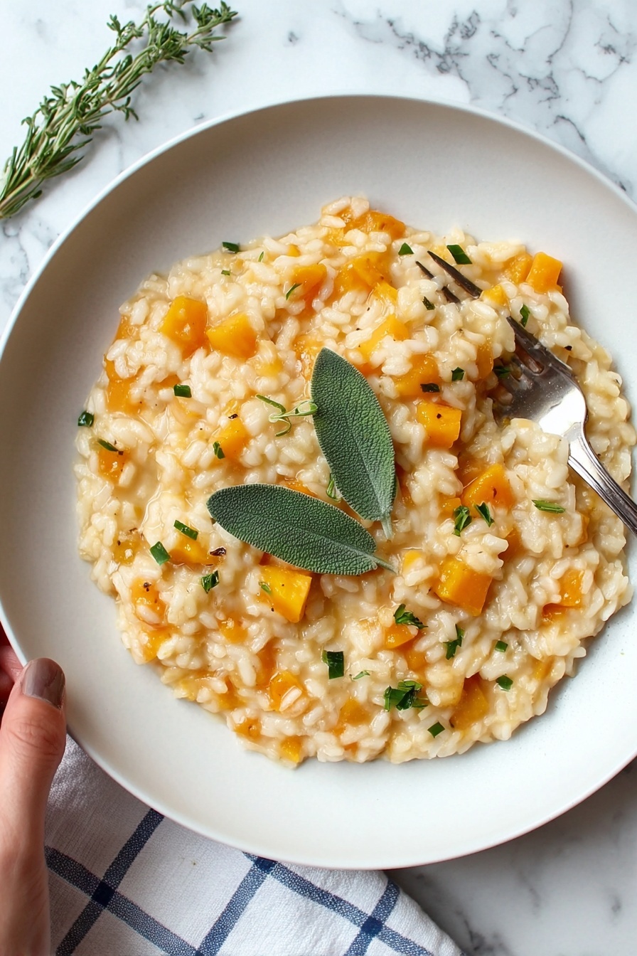 For special dinners, I like to serve this risotto in shallow bowls lined with a sage leaf, then topped with shaved Pecorino and a sprinkle of toasted pumpkin seeds for extra texture. It’s a lovely seasonal presentation that always gets compliments.