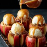 - Serve: Remove the warm apples carefully and serve immediately with a scoop of vanilla ice cream and a drizzle of caramel sauce for an irresistible dessert.