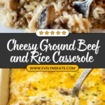 This Cheesy Ground Beef and Rice Casserole is a comforting and flavorful one-pot meal that combines tender ground beef, creamy mushrooms, and perfectly cooked rice, all topped with melted cheddar cheese. It’s an easy and hearty dinner option that’s perfect for family gatherings or weeknight meals.
