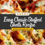 Classic Stuffed Shells is a comforting Italian-American baked pasta dish featuring jumbo pasta shells filled with a creamy mixture of ricotta, mozzarella, parmesan cheeses, and Italian seasoning, baked in marinara sauce until bubbly and golden. Perfect for a family dinner or special occasion, this recipe combines rich flavors and gooey cheese for a crowd-pleasing meal.