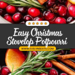 Christmas Stovetop Potpourri is a fragrant, festive blend of warm spices, fresh fruits, and herbs simmered gently on the stove to fill your home with the cozy scents of the holiday season. This easy-to-make potpourri uses natural ingredients like cranberries, cinnamon sticks, rosemary, cloves, and citrus to create a welcoming aroma that lasts for days.
