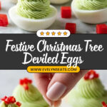 One of my favorite ways to present these Christmas Tree Deviled Eggs is on a large serving platter covered with fresh kale or parsley “grass.” Then, I arrange the eggs into perfect rows like a little forest. I’ve even added tiny edible star-shaped cheese pieces on top to resemble tree toppers, which my family adored. It’s all about bringing the festive spirit to your plate!