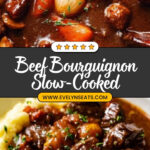 Classic French Beef Bourguignon is a rich, savory stew made with tender chuck beef, mushrooms, pearl onions, and bacon slow-cooked in red wine and beef stock until fall-apart tender. This hearty dish, originating from Burgundy, pairs perfectly with creamy mashed potatoes and benefits from marinating overnight to develop deep, complex flavors.