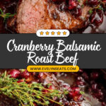 Remove the roast from the oven and let it rest for 15 minutes before slicing. This resting step is crucial: it lets the juices redistribute, so each slice is juicy and tender. Pour pan drippings over the sliced beef or spoon the cranberry balsamic sauce on top — either way, you’re in for a treat.