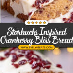 This Starbucks Cranberry Bliss Bread recipe is a delicious homemade take on the beloved seasonal treat. Moist and tender, the bread features a blend of all-purpose and whole wheat flour, studded with sweet dried cranberries and white chocolate chips for bursts of flavor. Topped with a luscious vanilla icing, sprinkled with extra cranberries, and drizzled with melted white chocolate, this bread is perfect for holiday breakfasts, snacks, or gifting.