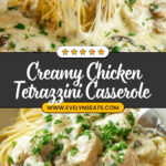 This classic Chicken Tetrazzini recipe features tender shredded chicken and linguine pasta baked in a rich, creamy mushroom sauce, topped with melted mozzarella cheese for a comforting and delicious casserole perfect for family dinners or meal prep.