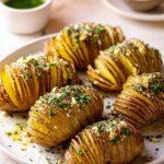 - Finish and serve: Season the Hasselback potatoes to taste with additional salt and pepper. Garnish with chopped fresh parsley and a sprinkle of red pepper flakes for a subtle heat. Serve hot with extra garlic butter on the side for dipping.