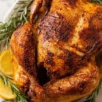 When I’ve made this for special occasions, I like to place the turkey on a large wooden carving board surrounded by roasted vegetables and herbs. It creates a rustic, inviting centerpiece that invites everyone to dig in and makes your table feel extra festive.