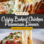 This classic Chicken Parmesan recipe features tender, breaded chicken cutlets pan-fried to a golden crisp, then baked with marinara sauce and melted mozzarella cheese for a comforting Italian-American favorite that’s perfect for a satisfying weeknight dinner.