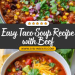 I absolutely love how this Easy Ground Beef Taco Soup Recipe comes together—it’s one of those comfort-food dishes that never fails to satisfy. Whether you’re feeding a crowd or just craving something cozy, it’s easy, flavorful, and flexible enough to become your new weeknight staple. Give it a try and see how quickly it becomes a family favorite at your house, just like it did at mine!