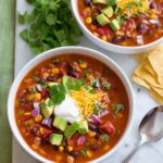 - Add beans and corn: Stir in the frozen corn, black beans, and pinto beans. Continue cooking until everything is heated through, about 5-10 minutes. If the soup is too thick, add up to 1/2 cup water to thin it to your liking.