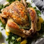 One of the things I love about this Easy No Fuss Thanksgiving Turkey Recipe is how easy it is to make it your own. I often tweak the herbs or swap the fruit inside the cavity depending on what’s in season or what my family’s cravings are.
