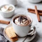 I haven’t tried freezing this hot chocolate before because it’s best fresh, but theoretically, you could freeze the base liquid (milk, cream, and chocolate combined) in an airtight container. Just thaw overnight in the fridge and whisk well when reheating to restore that creamy texture.