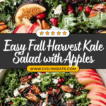 A vibrant and nutritious Fall Harvest Salad featuring kale, crisp apples, dried figs, pomegranate arils, toasted pecans, and tangy cheese, all tossed in a flavorful maple balsamic dressing. Perfect as a healthy side dish celebrating autumn flavors.