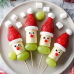 Celebrate the holiday season with these festive Christmas Fruit Kabobs and charming Banana Santa Kabobs. These healthy, colorful skewers combine fresh strawberries, green grapes, bananas, and marshmallows to create delightful, kid-friendly treats perfect for parties and family gatherings.