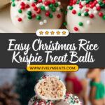 These festive Christmas Rice Crispy Treats are bite-sized balls made with puffed rice cereal and marshmallows, coated in smooth white chocolate and adorned with colorful red, green, and white sprinkles. Perfect for holiday parties or as a fun seasonal treat, they combine the classic chewy texture of Rice Krispies with a creamy, chocolaty coating that adds a delightful festive touch.