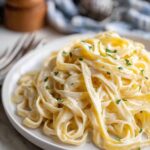 This classic Fettuccine Alfredo recipe features perfectly cooked fettuccine tossed in a rich, creamy sauce made from butter, shallots, heavy cream, and freshly grated Parmigiano Reggiano. The sauce is emulsified with pasta water for a glossy, silky coating that brings out the authentic Italian flavors in every bite. Garnished with fresh parsley and extra Parmesan, this simple yet luxurious dish is perfect for a quick weeknight dinner or an indulgent treat.