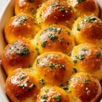 These Garlic Butter Dinner Rolls are soft, fluffy, and infused with rich garlic and parsley butter, making them the perfect accompaniment to any meal. Made with simple ingredients and an easy kneading process, these rolls rise twice for a light texture and are baked to a golden perfection before being brushed with aromatic garlic butter.