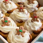 - Glaze and Decorate: Spread the cream cheese glaze over the warm rolls. Top each roll with an icing gingerbread person for a festive finishing touch.