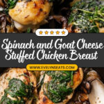 This Goat Cheese & Spinach Stuffed Chicken Breast recipe features tender chicken breasts filled with a creamy spinach and goat cheese mixture, complemented by caramelized onions and sautéed baby bella mushrooms. Baked to juicy perfection, this dish offers a harmonious blend of savory flavors perfect for a satisfying dinner.