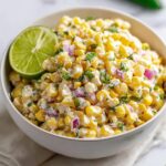 This Delicious Street Corn Salad with Greek Yogurt is a vibrant, tangy, and creamy dish that captures the flavors of classic Mexican street corn with a healthier twist. Charred grilled corn or warmed frozen corn is mixed with fresh cilantro, cotija cheese, jalapeño, red onion, and garlic, all tossed in a zesty dressing made from Greek yogurt, mayonnaise, lime juice, and spices. This salad works perfectly as a refreshing side or a light meal, served warm or chilled.