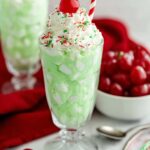 - Garnish and serve: Before serving, top the fluff with whipped cream, red and green sprinkles, and a maraschino cherry on each serving for a festive touch. Enjoy your Grinch Fluff!