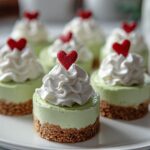 These Grinch Mini Cheesecakes are festive, creamy treats perfect for holiday celebrations. Featuring a buttery graham cracker crust and a vibrant green cream cheese filling, these no-bake cheesecakes are topped with whipped cream and a cute red heart candy, adding a playful touch inspired by the beloved Grinch character.