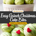 These festive Grinchy Christmas Cake Bites are a delightful holiday treat featuring chewy red velvet cookie crumbs blended with creamy cream cheese, then coated in vibrant green white chocolate and decorated with charming red heart sprinkles. Perfect for holiday parties or gifting, these bite-sized desserts combine rich flavor with eye-catching color.