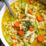A comforting and flavorful chicken soup with fresh herbs, ginger, and turmeric, enriched with pearl couscous and vegetables. This hearty and nourishing recipe combines aromatic spices and tender chicken simmered slowly to perfection, creating the best chicken soup you’ll ever eat. Ideal for chilly days or when you need a soothing meal with a nutritional boost.
