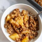 This Healthy Breakfast Apple Crumble is a nutritious twist on a classic dessert, perfect for a wholesome morning start. Featuring sautéed sweet apples infused with cinnamon and a crunchy pecan-oat crumble, it’s baked to golden perfection and served warm with your choice of milk, yogurt, or ice cream.