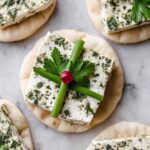 These Festive Goat Cheese Christmas Present Appetizers are charming and elegant bite-sized treats perfect for holiday gatherings. Featuring creamy herbed goat cheese neatly shaped atop crispy rice crackers, adorned with fresh chives, pink peppercorns, and curly parsley, they bring a delightful combination of flavors and a festive presentation that’s sure to impress guests.