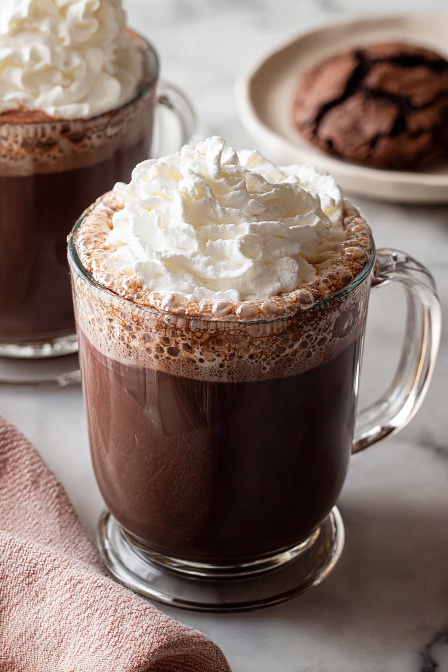 For special occasions, I like serving hot chocolate in glass mugs so you can see all the layers of whipped cream and chocolate. Add a cinnamon stick as a stirrer, or rim the mugs with crushed peppermint candies for holiday flair. Another fun trick is topping with flavored whipped cream—try chai or orange zest mixed in for a surprising twist.