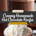 This Homemade Hot Chocolate recipe is a rich, creamy, and comforting beverage made with whole milk, cocoa powder, and bittersweet chocolate. Perfect for cozy evenings or as a delightful treat, this hot cocoa is enhanced with pure vanilla extract and topped with homemade whipped cream for an indulgent finish.