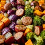 This Sheet Pan Honey Garlic Kielbasa recipe combines savory pork kielbasa, roasted sweet and small potatoes, and tender broccoli all baked together with a delicious honey garlic sauce. Easy to prepare and perfect for a hassle-free weeknight dinner that delivers hearty flavors and a touch of sweetness.