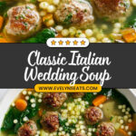 Italian Wedding Soup is a comforting Italian-American classic featuring tender homemade meatballs simmered in a flavorful chicken broth with vegetables, small pasta, and fresh spinach. This hearty soup blends savory meatballs, aromatic herbs, and fresh ingredients for a nourishing and satisfying meal perfect for any season.