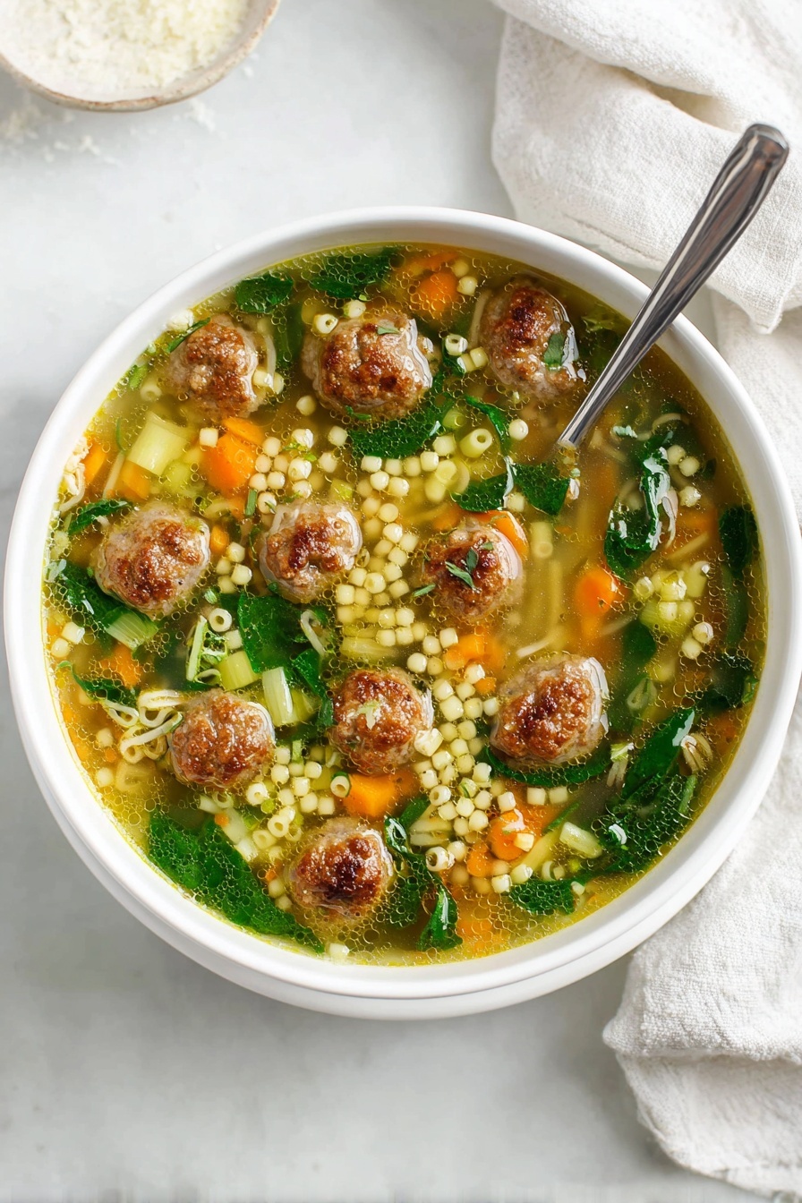 When it comes to this Italian Wedding Soup with Meatballs and Spinach Recipe, the ingredients really sing together to create layers of warmth and flavor. I always recommend using fresh herbs and good quality meat for the best results, and you’ll find small pasta shapes like acini de pepe make this soup feel authentic and just right.
