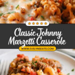 Johnny Marzetti is a comforting baked pasta casserole featuring elbow macaroni, seasoned ground beef and Italian sausage, savory mushrooms, bell peppers, and a rich tomato sauce topped with melted mozzarella and cheddar cheese. This classic Midwestern dish is perfect for family dinners and easy to prepare ahead.