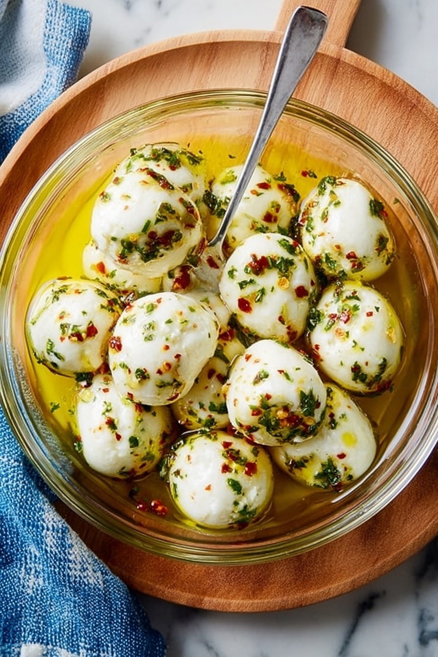 You’ll find these marinated mozzarella balls pair beautifully with crusty bread or warm pita for scooping. They’re also fantastic alongside a fresh green salad or served with a chilled glass of white wine on a lazy afternoon. My family especially loves them as part of a charcuterie board loaded with cured meats, nuts, and pickles—a guaranteed crowd-pleaser.