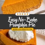 This No-Bake Pumpkin Pie features a homemade graham cracker crust and a creamy, spiced pumpkin filling made with marshmallows to add a sweet, fluffy texture. This easy-to-make pie requires no traditional baking of the filling and is perfect for a quick and delicious fall dessert that can be chilled and served with whipped cream.