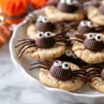 Absolutely! Whether you go homemade or store-bought, as long as the cookies are sturdy enough to hold the Reese’s cup and the melted chocolate, your peanut butter spiders will turn out great. Chewier cookies work best to support the chocolate legs without crumbling.