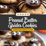 These Peanut Butter Spider Cookies are a fun and spooky treat perfect for Halloween or any festive occasion. Made with peanut butter cookies topped with mini Reese’s peanut butter cups and decorated with melted chocolate to create spider legs, they are both delicious and adorable. Optional mini candy eyeballs add an extra creepy-cute touch. Quick to assemble and no baking required if using store-bought cookies, these cookies are sure to delight kids and adults alike.