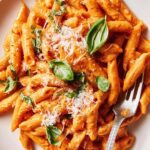 Penne Alla Vodka is a creamy, comforting Italian pasta dish featuring a flavorful tomato and vodka sauce enriched with butter, heavy cream, and Parmesan cheese. This rich yet approachable recipe combines tender penne pasta with a subtly spiced sauce, balanced by fresh basil for a delicious meal perfect for any occasion.