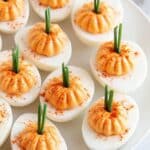 These pumpkin deviled eggs are fantastic alongside a crisp garden salad to balance the richness. I also love serving them with roasted root vegetables or a stout cheese board when entertaining. They pair wonderfully with warm soups, especially pumpkin or butternut squash soup, making for an all-around seasonal meal.