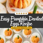 Pumpkin Deviled Eggs are a festive and creative twist on the classic deviled egg recipe. Perfect for autumn gatherings and Halloween parties, these deviled eggs are styled to look like mini pumpkins using simple ingredients and garnishes like fresh chives and smoked paprika. Creamy, tangy, and visually charming, they make a delicious high-protein appetizer or snack that’s quick to prepare and sure to impress guests.
